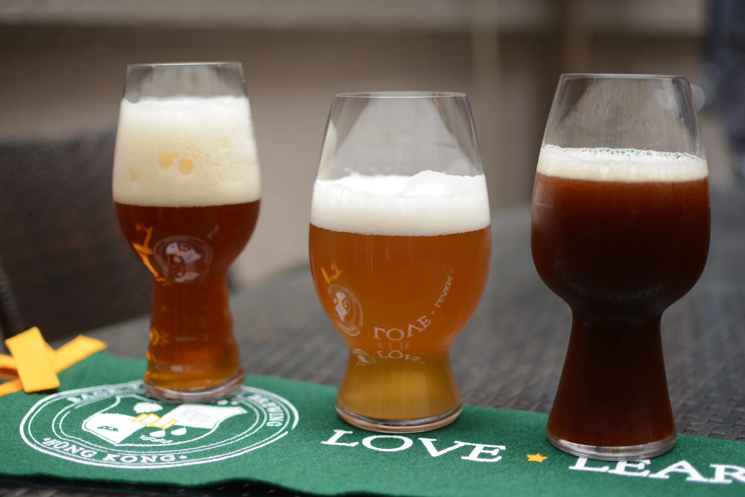 Thanksgiving Brews. From left to right: Pumpkin Saison, Cranberry Wheat, Smoked Brown Ale